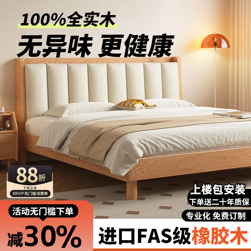 床全实木加厚软包1.8米双人橡木床家用主卧1.2米单人床架出租房用