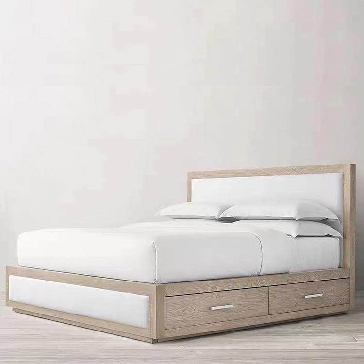 RH实木床美式双人婚床1.8米软靠抽屉储物主卧床法式橡木做旧家具