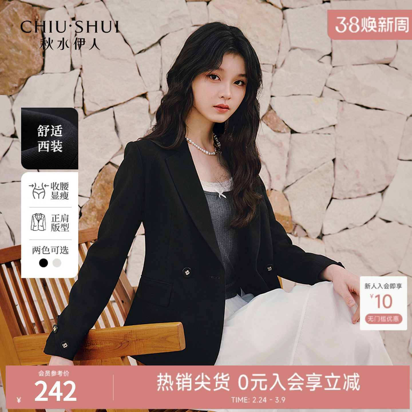 秋水伊人黑色西装外套女2025初秋新款休闲简约职业装超火西服上衣