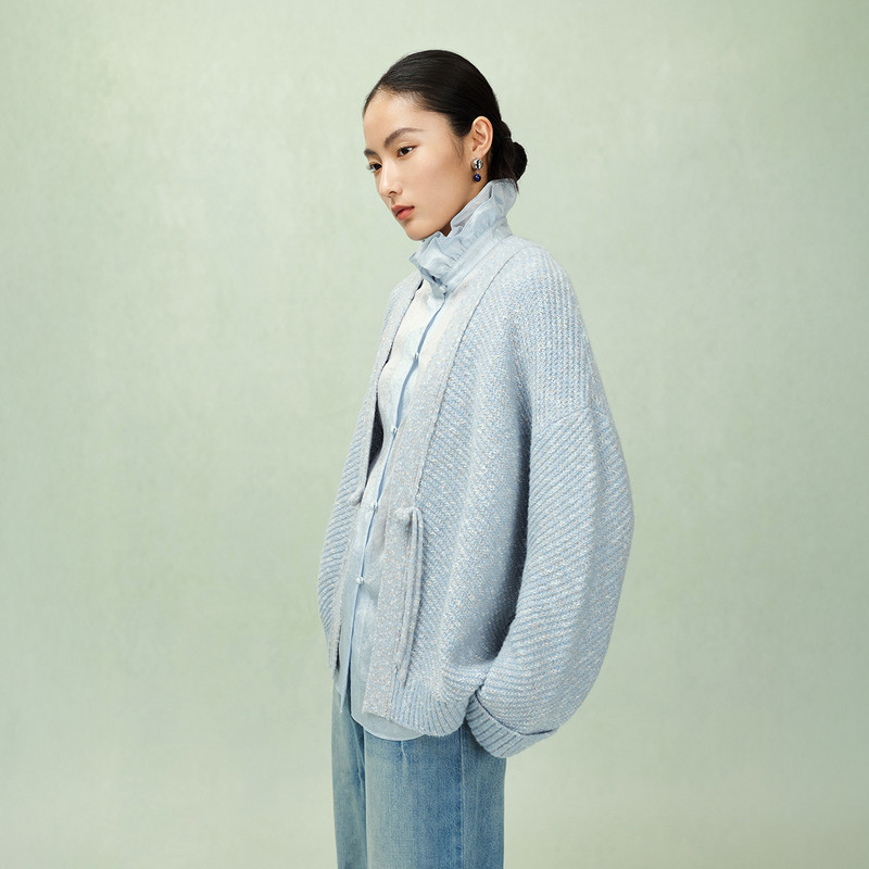 纳薇金黍酿风2025秋新中式女装绵羊毛宽松针织衫毛衣开衫外套
