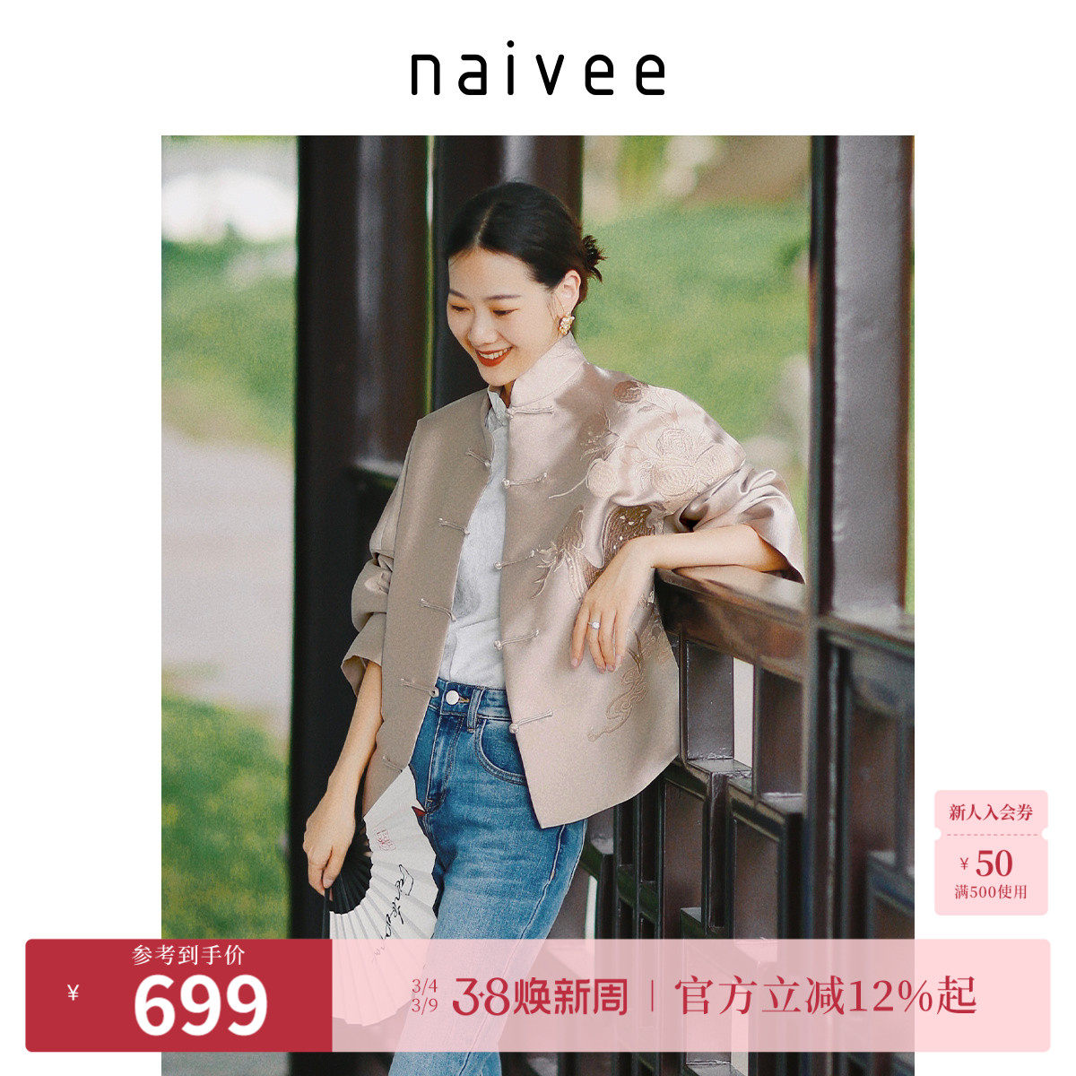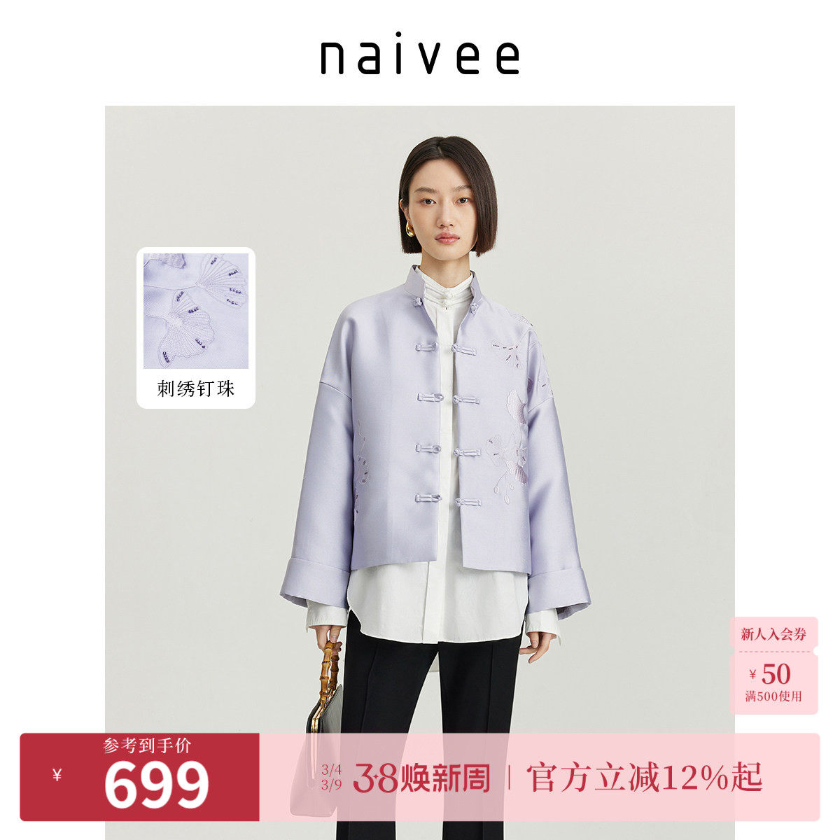 naivee纳薇博主同款秋新中式女装国风上衣刺绣盘扣宽松外套女