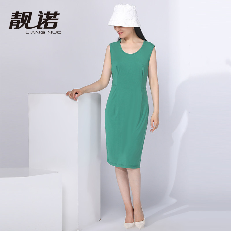 靓诺LIANGNUO绿色无袖圆领长裙拉链渐变高档时尚连衣裙LL18260B