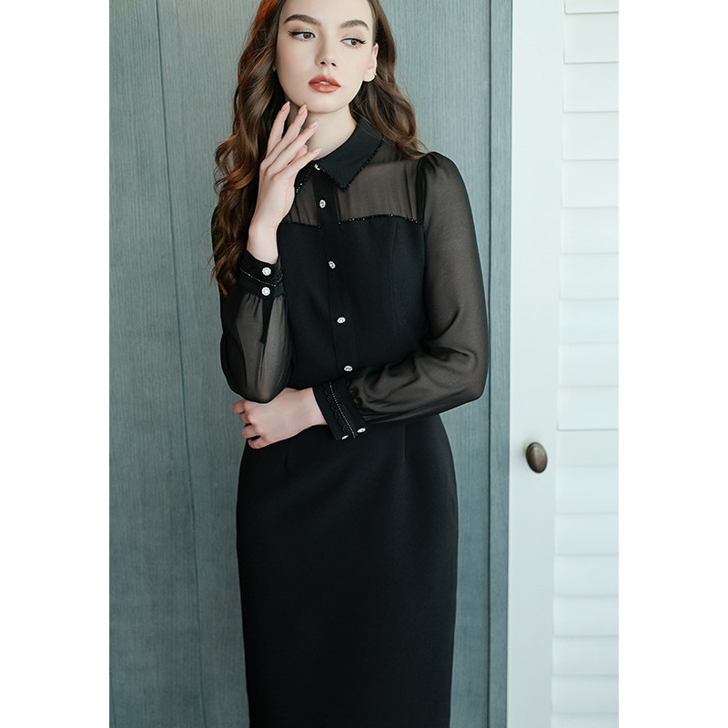 MD依诺【艺术灵光】2025气质长袖时尚休闲百搭打底修身拼接连衣裙