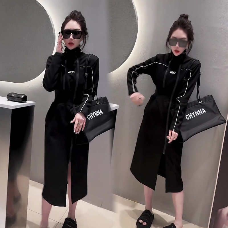 网红爆款设计感时尚连衣裙女2023年春季新款韩版显瘦高领长款裙子