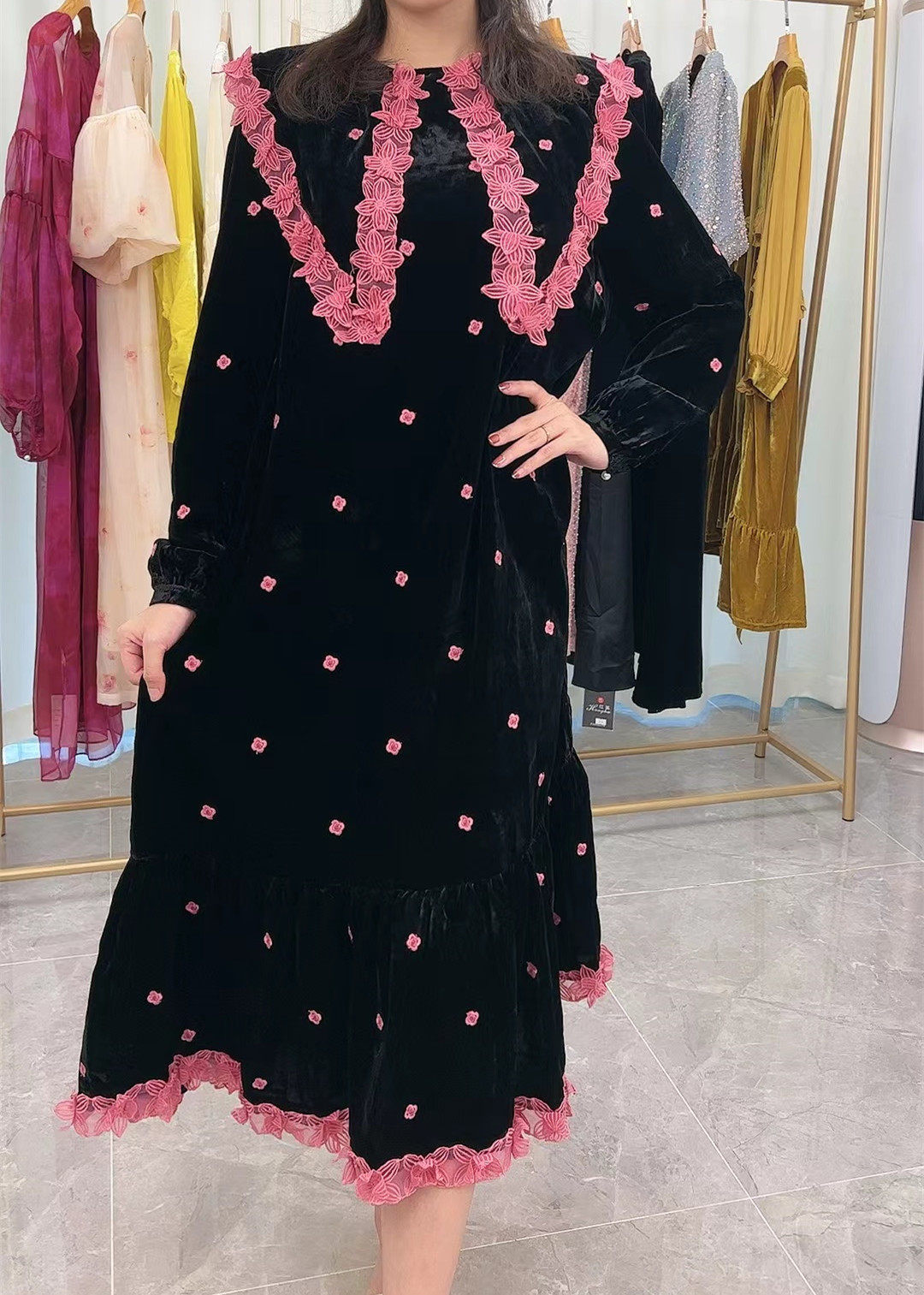 欧洲站2022秋新款花翎丝绒刺绣钉花娃娃领减龄高端时尚连衣裙