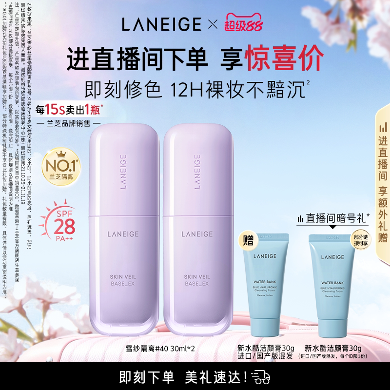 【下拉享优惠】LANEIGE兰芝雪纱丝柔修颜隔离乳SPF28PA++双色可选