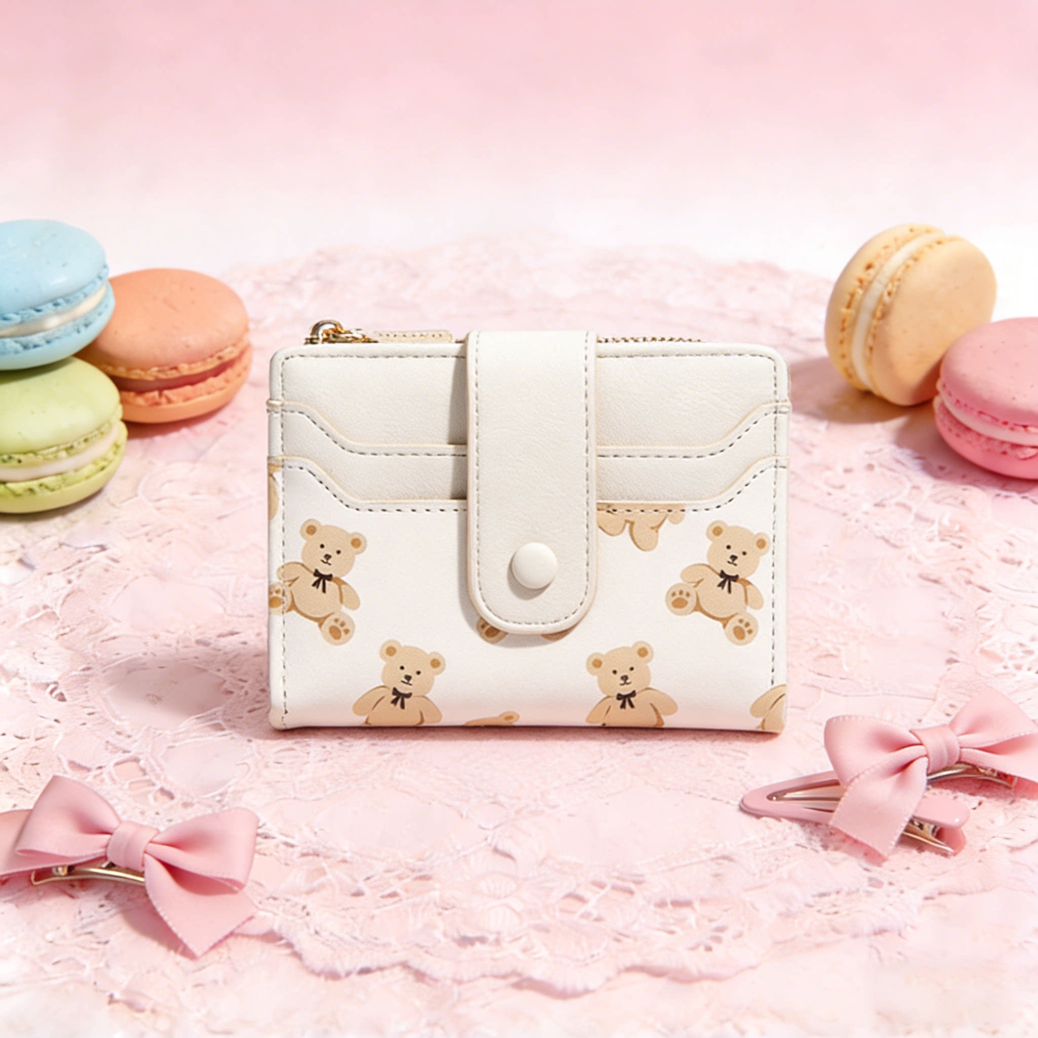 可爱小熊短款钱包女款2026新款皮质轻薄小巧多卡位零钱包卡包一体