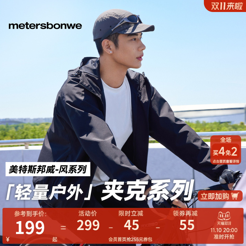 美特斯邦威男女同款夹克秋冬季新款户外防水外套运动修身连帽上衣