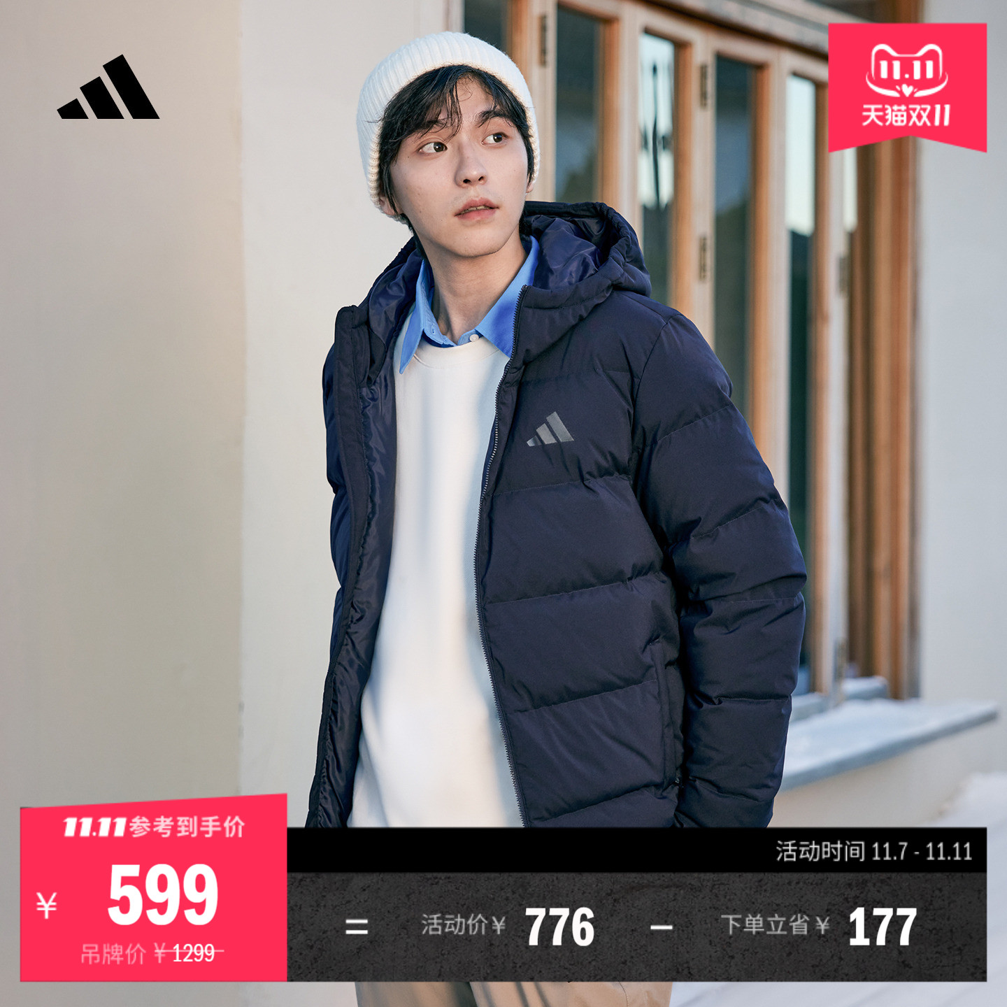 600蓬休闲保暖鸭绒连帽羽绒服男装秋冬新款adidas阿迪达斯轻运动
