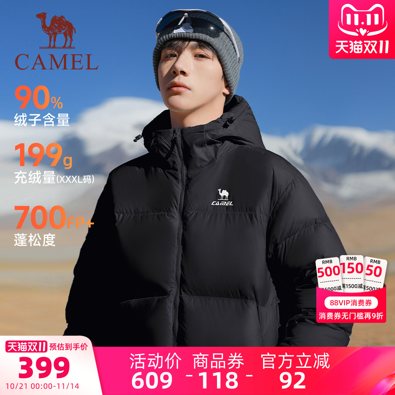 骆驼羽绒服运动2025新款秋冬季男女同款防油防风加厚科技连帽外套