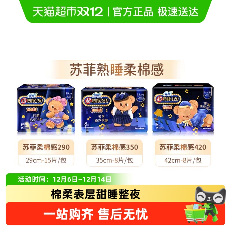 苏菲卫生巾女超熟睡夜用290mm棉柔姨妈组合装整箱正品官方旗舰店