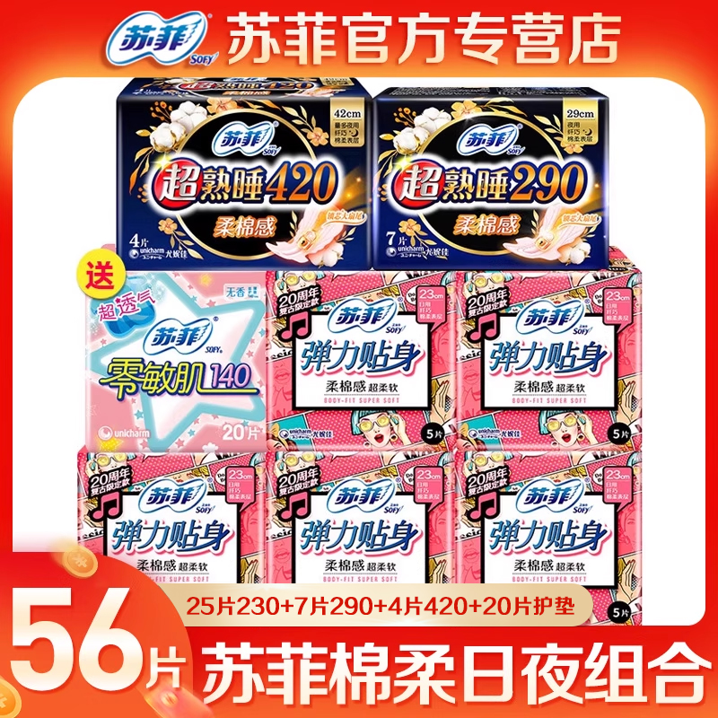 苏菲卫生巾棉柔日用夜用日夜组合装姨妈女整箱批发正品官方旗舰店