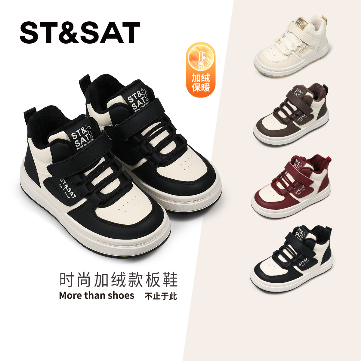 星期六童鞋儿童板鞋秋冬新款休闲百搭软底男童鞋子女童加绒运动鞋