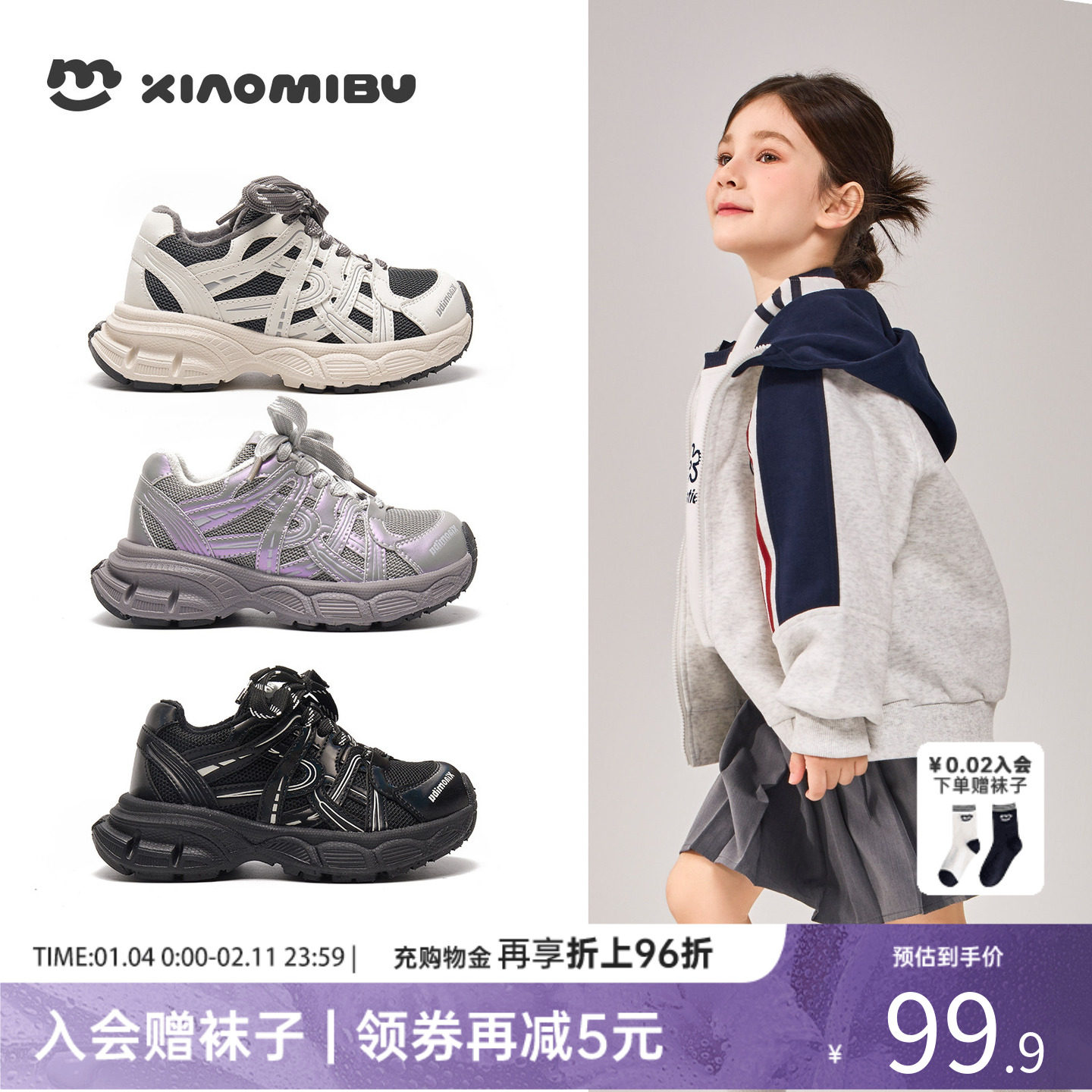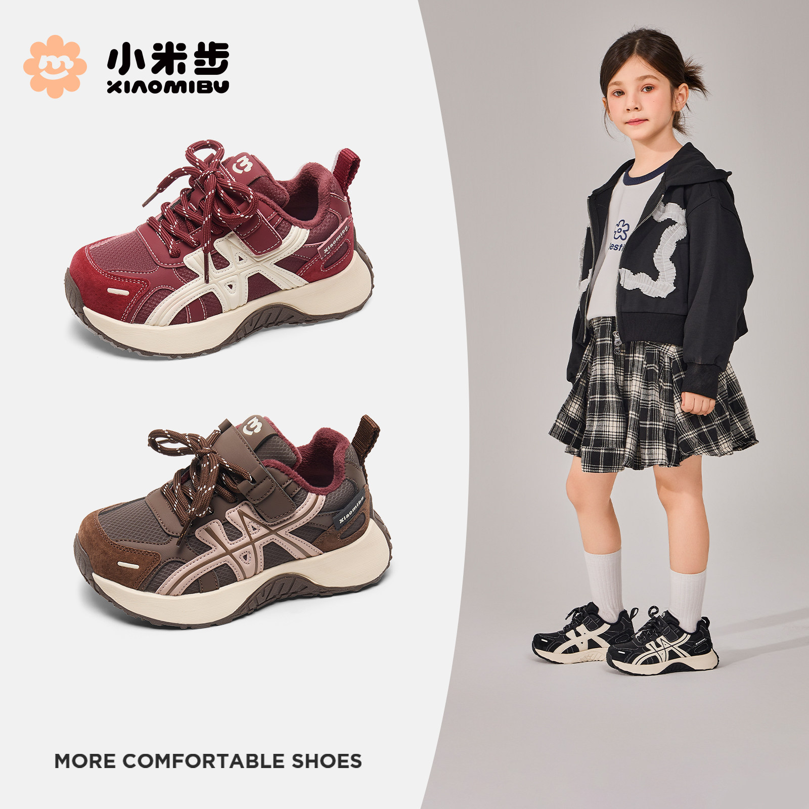 小米步女童加绒运动鞋2025冬季款儿童休闲跑步鞋男童老爹鞋中大童