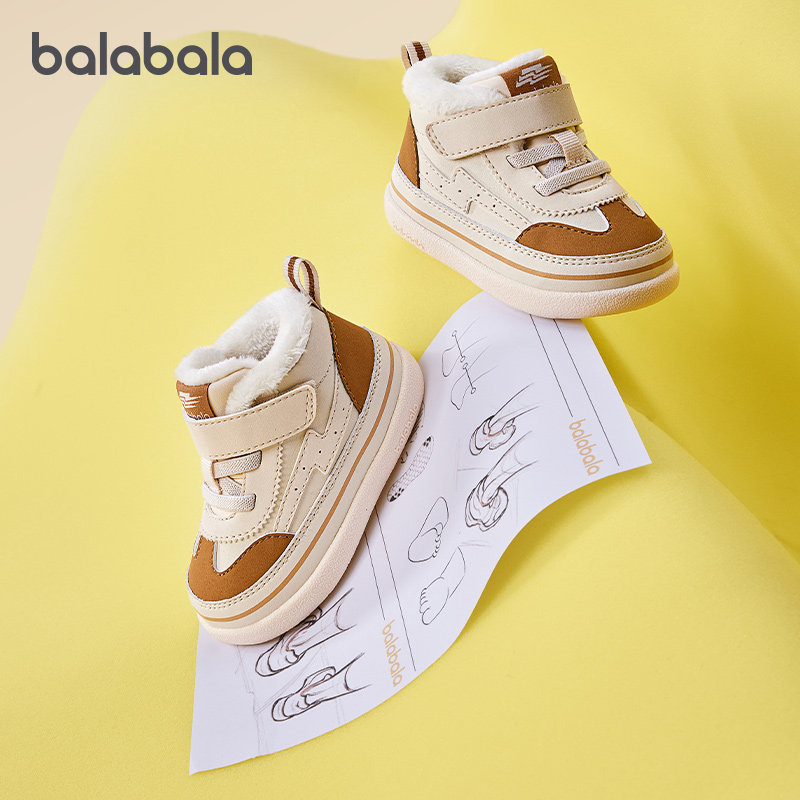 巴拉巴拉婴儿学步鞋男童女童加绒运动鞋儿童软底加厚鞋底冬季童鞋
