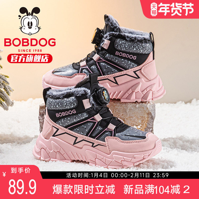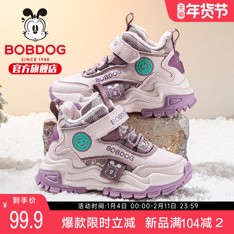 巴布豆童鞋官方旗舰店正品女童加绒运动鞋加厚女大童男儿童二棉鞋