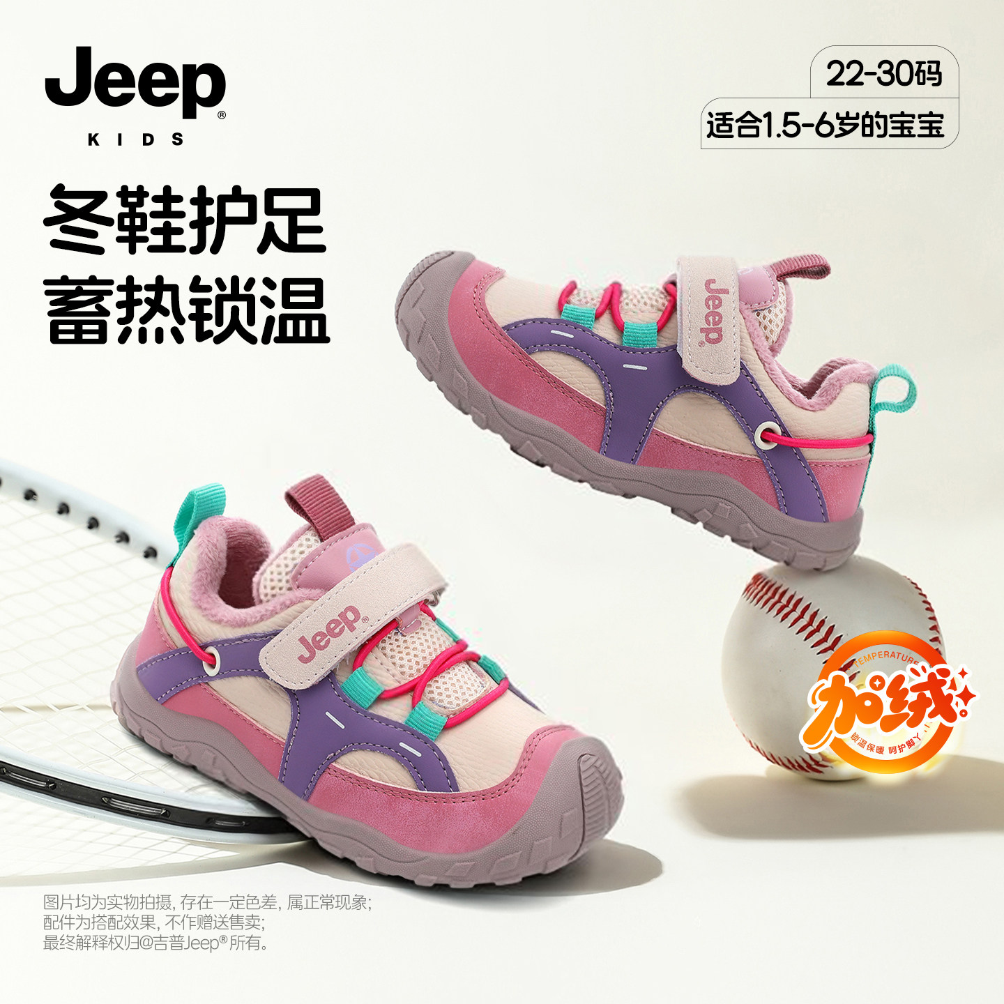jeep女童加绒运动鞋2025新款冬季儿童二棉鞋男童保暖冬鞋宝宝鞋子