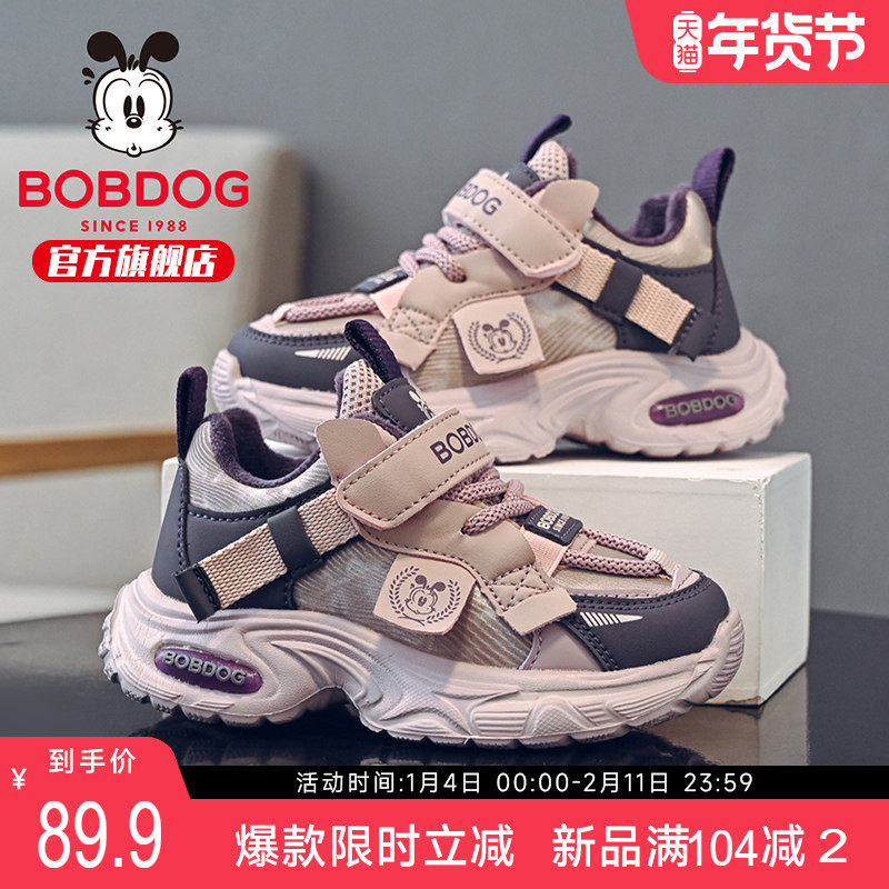 巴布豆童鞋女童加绒运动鞋2025新款冬季女孩加厚老爹鞋儿童二棉鞋
