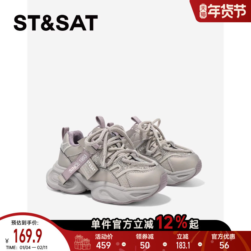星期六童鞋女童加绒运动鞋秋冬季新款百搭时尚保暖舒适儿童老爹鞋