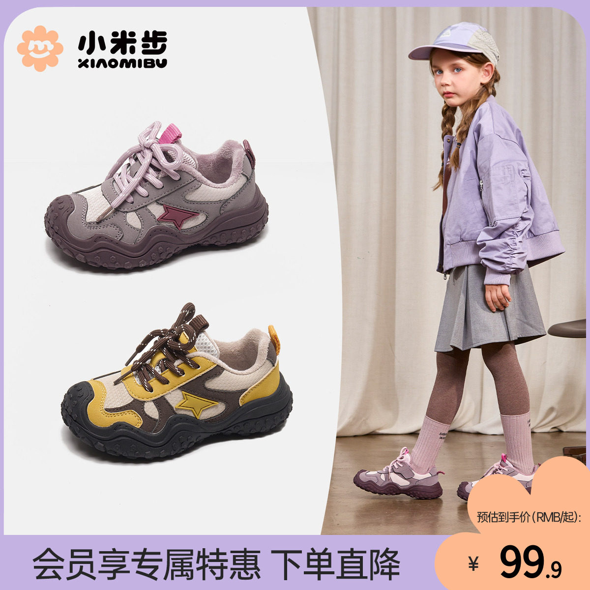 小米步女童加绒运动鞋2025冬季新款拼色设计老爹鞋儿童百搭休闲鞋