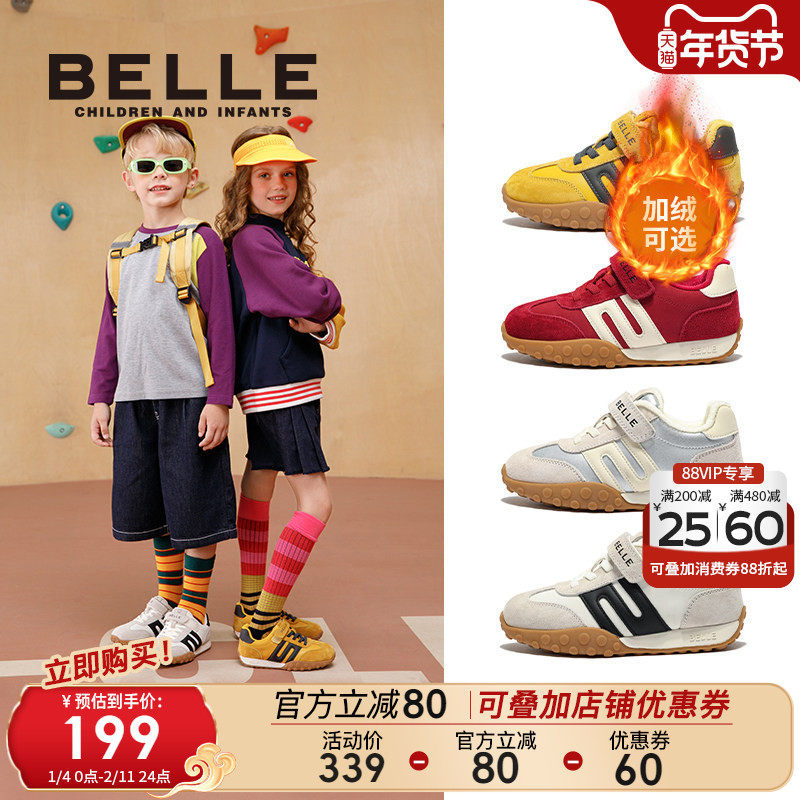 彩虹糖丨百丽童鞋女童加绒运动鞋冬季新款儿童复古德训鞋男童板鞋