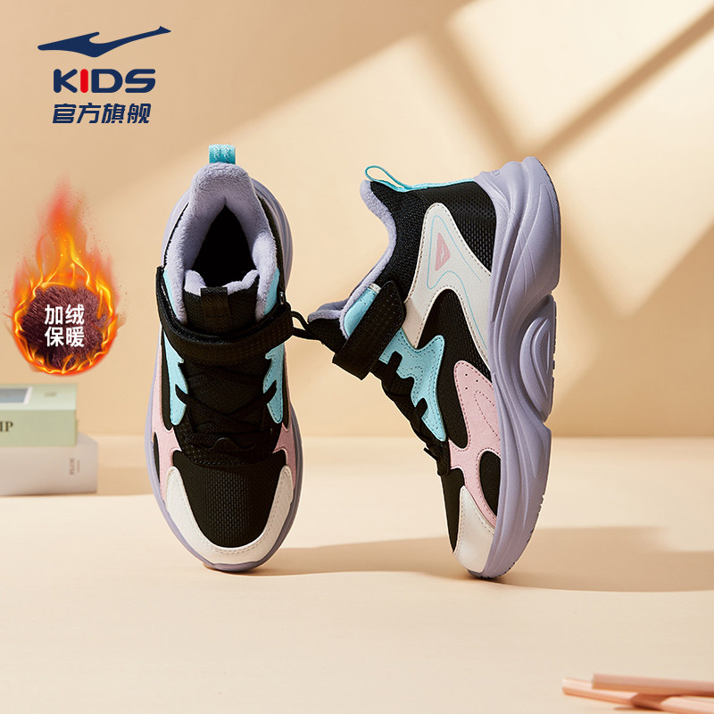 鸿星尔克童鞋女童加绒运动鞋2025冬季加厚保暖男童二棉鞋儿童鞋子