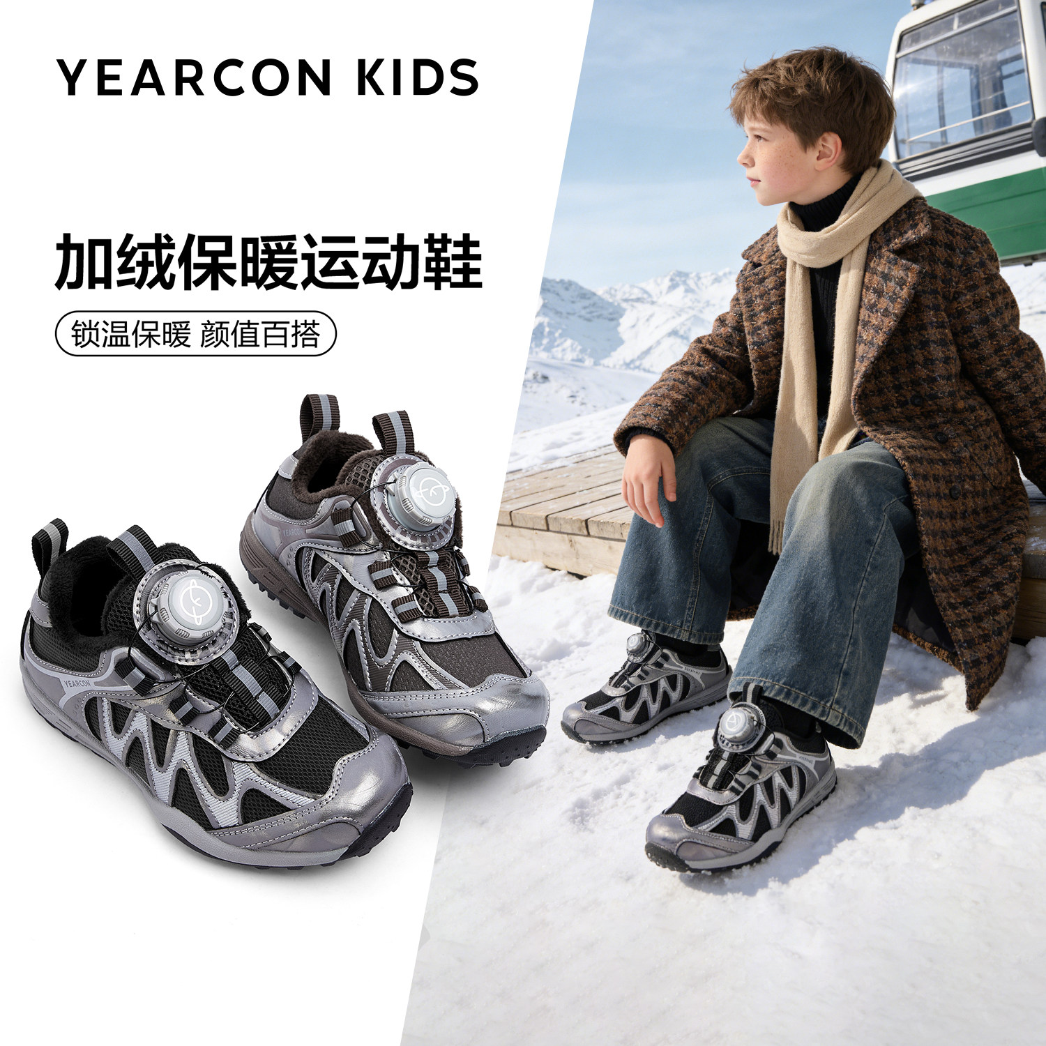 意尔康童鞋女童加绒运动鞋2025年冬季新款男童轻便保暖儿童跑步鞋