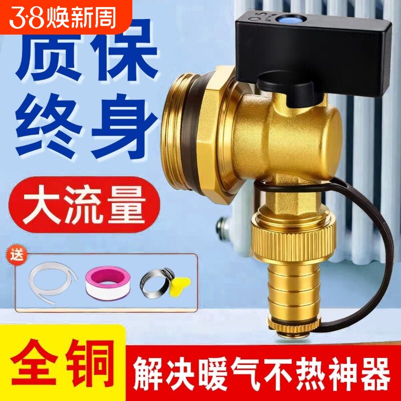 暖气片全铜排气阀放气阀大流量放水阀排水阀手拧4分6分1寸可接管