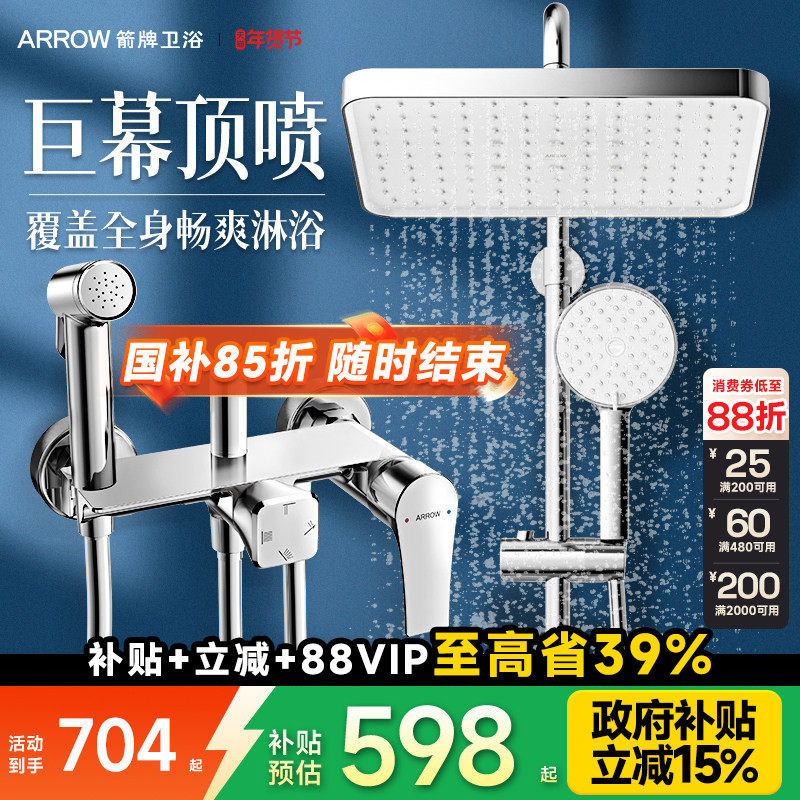 箭牌卫浴淋浴花洒套装全铜冷热水龙头增压喷头浴室升降妇洗淋浴器