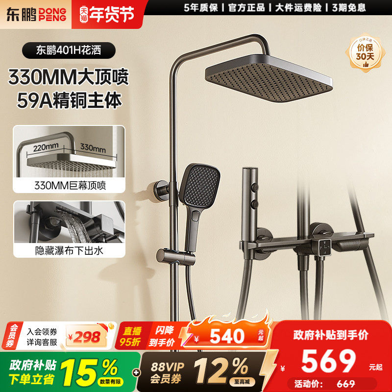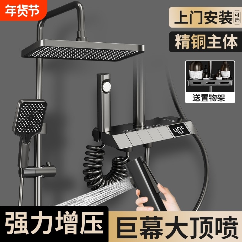 正品恒温数显淋浴花洒套装全铜枪灰淋雨浴室卫生间增压沐浴器通用