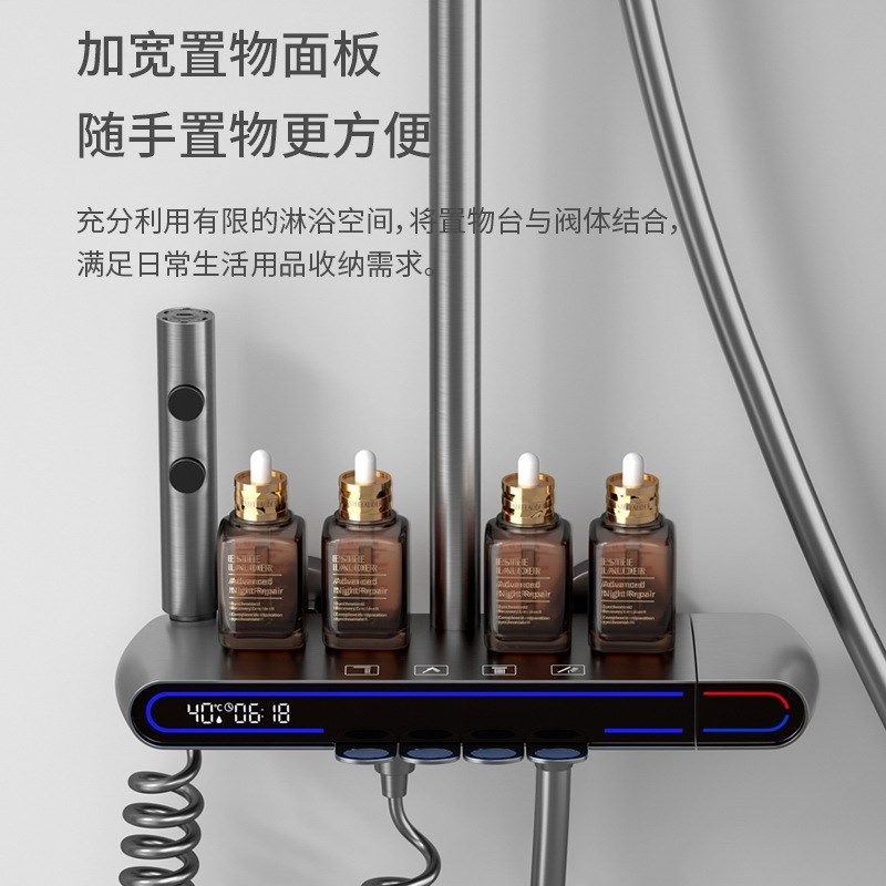 枪灰恒温浴室花洒套装全铜氛围灯数显卫生间高端淋浴花Z洒增压喷