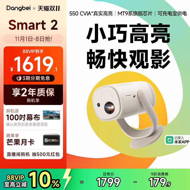 【新品首发 政府补贴立减15%】当贝Smart2投影仪家用超高清轻薄便携智能投影机激光电视卧室