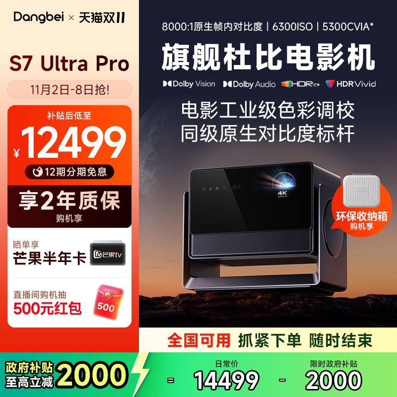 【巅峰新品 全国国补立减20%】当贝新品S7 Ultra Pro 4K投影仪家用超高清云台护眼高亮激光电视投屏投影机