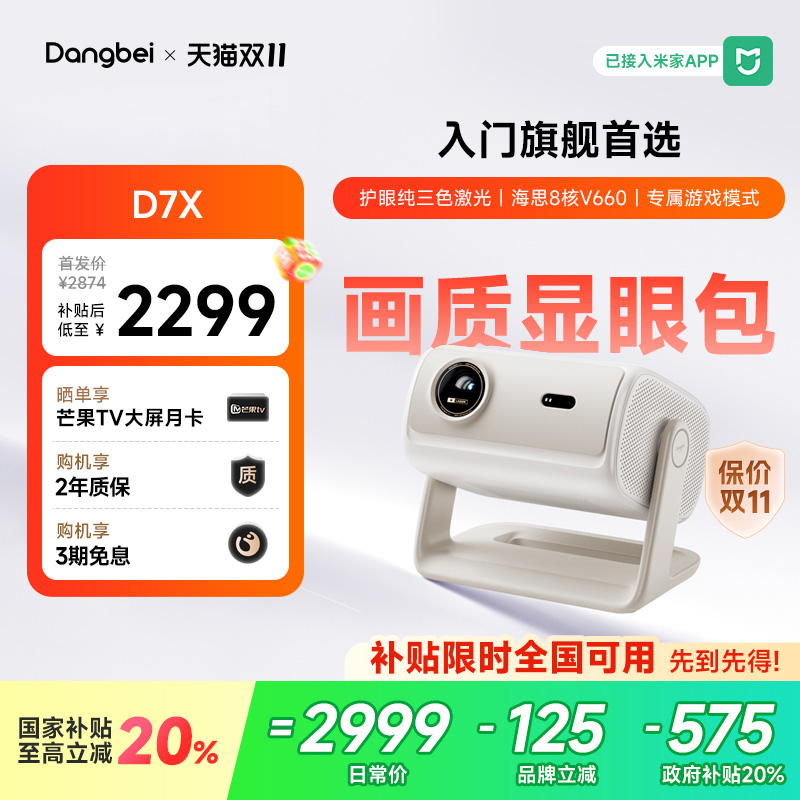 【全新上市 国补立减20%】当贝D7X投影仪家用超高清小型便携激光电视手机投屏高清高亮智能投影机