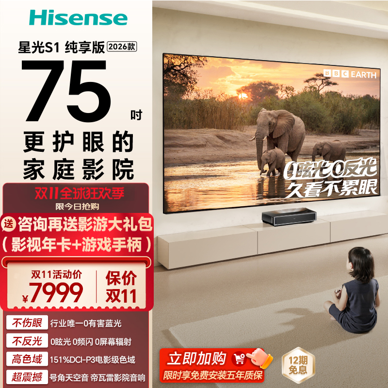 海信激光电视 星光S1 纯享版新品 75英寸 大屏护眼以旧换新全国补