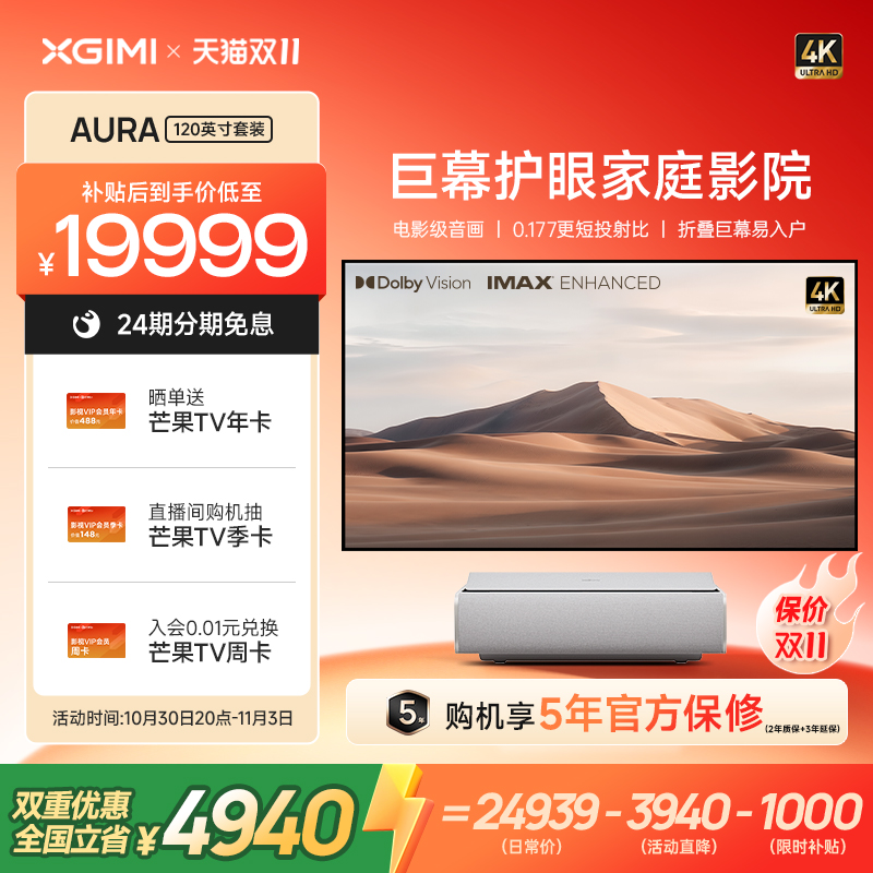【政府补贴+品牌直降 立减4940】极米AURA 2 120英寸套装4K激光电视投影仪超高清高亮度家用投影机家庭影院