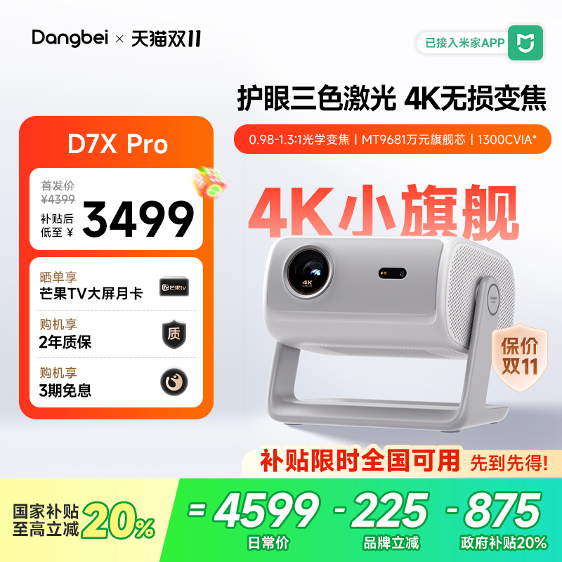 【重磅新品 全国国补立减20%】当贝D7X投影仪家用超高清小型便携激光电视高清高亮智能投影机手机投屏