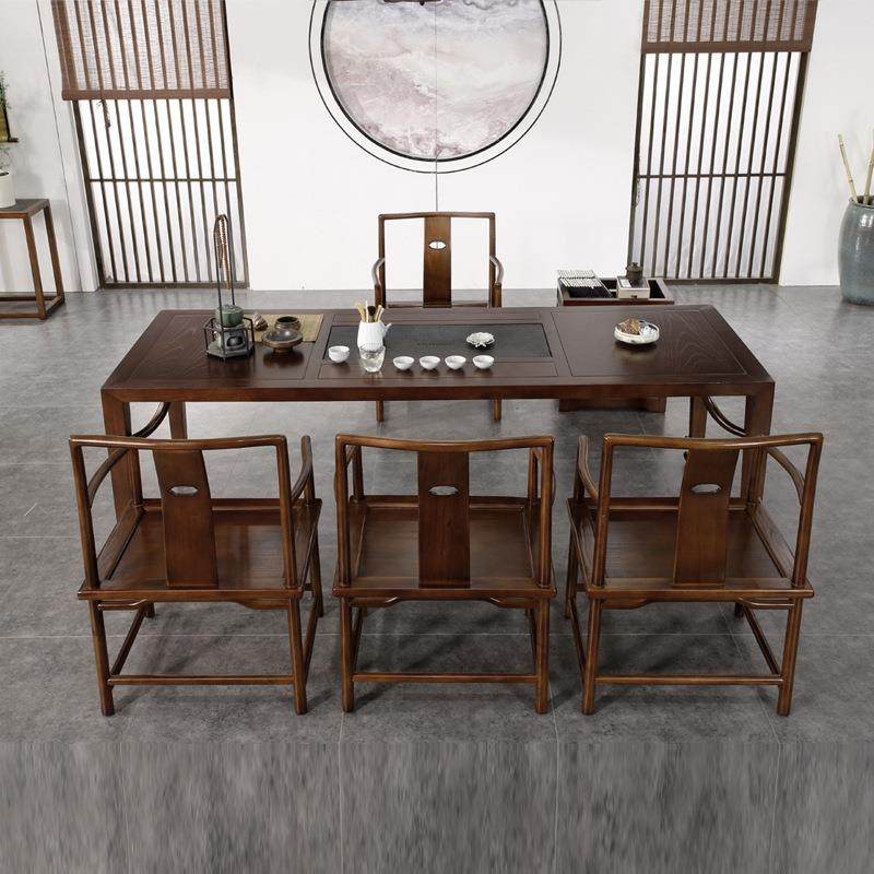 现代简约实木大板茶桌椅组合一桌五椅办公室客厅家用泡茶台高级感