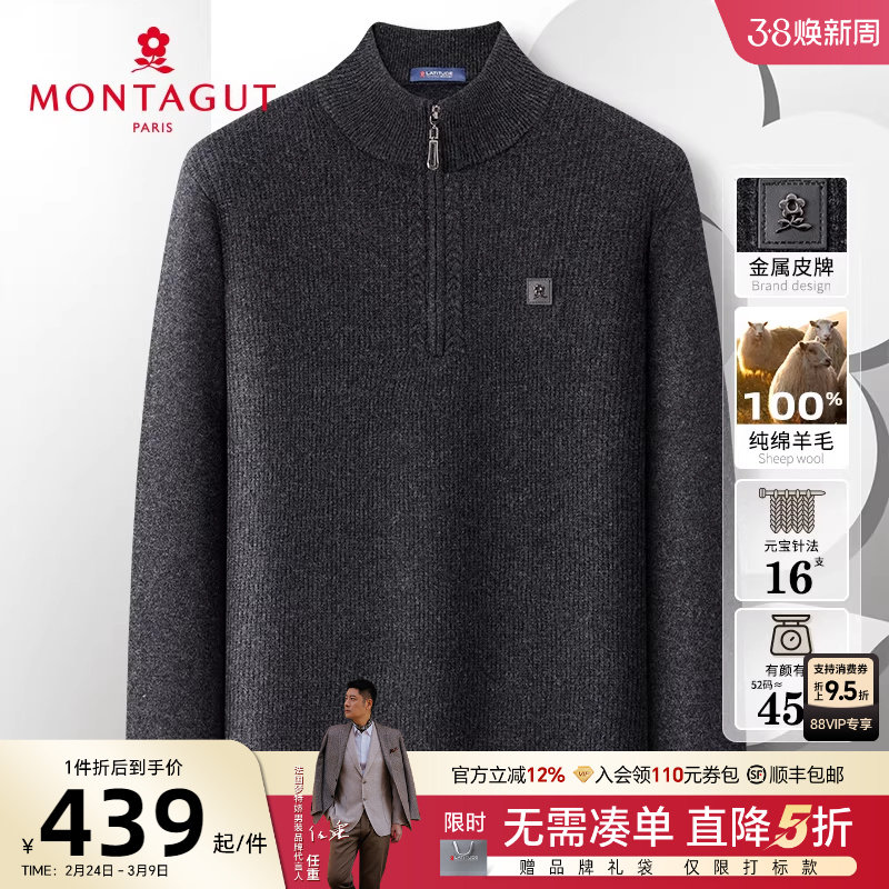 [重磅加厚/纯羊毛]梦特娇25冬季男士半高领拉链绵羊毛衫保暖毛衣J