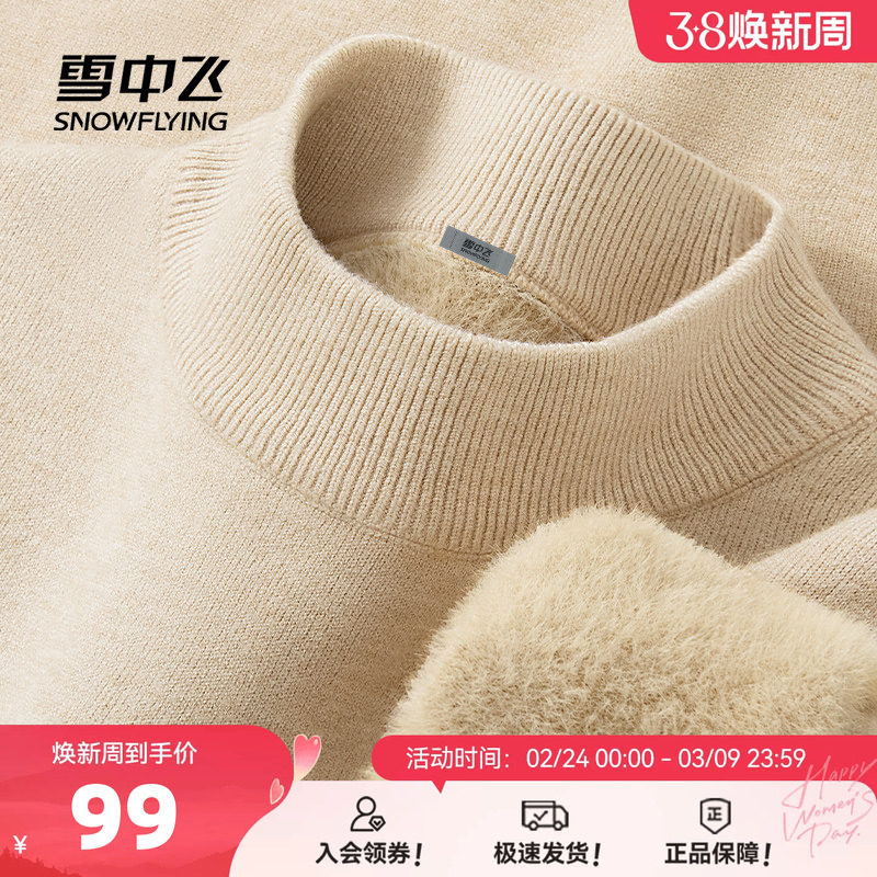 雪中飞加绒毛衣女春装加厚2026女士保暖一体绒内搭半高领打底衫PC