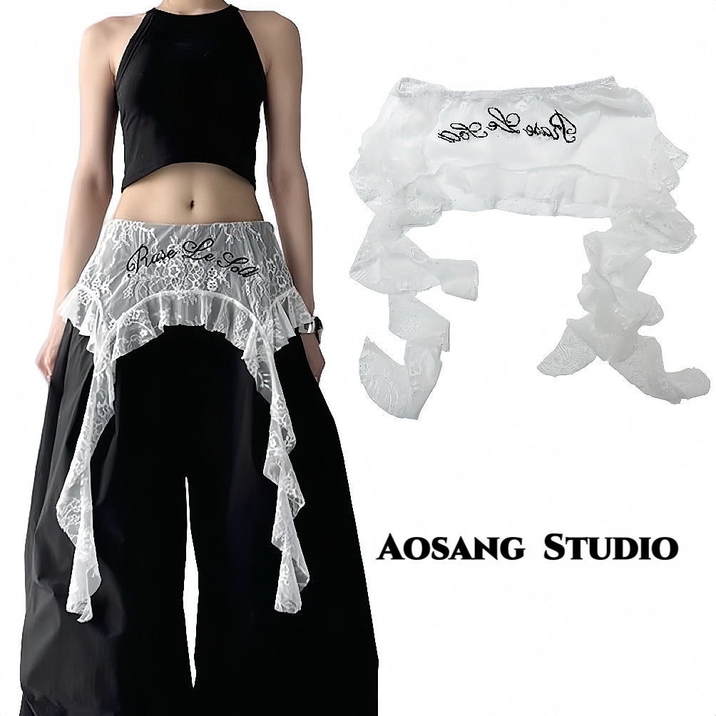 郑佰万~原创设计韩国蕾丝花边屁帘围裙女叠穿绑带半身裙百搭罩裙