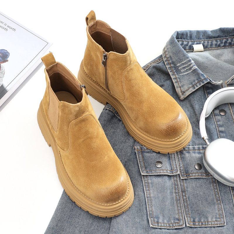 马丁靴男款中帮厚底英伦切尔西套筒短靴复古户外休闲大黄靴子男鞋