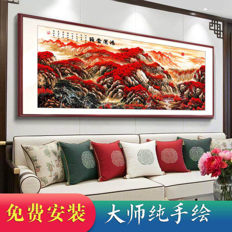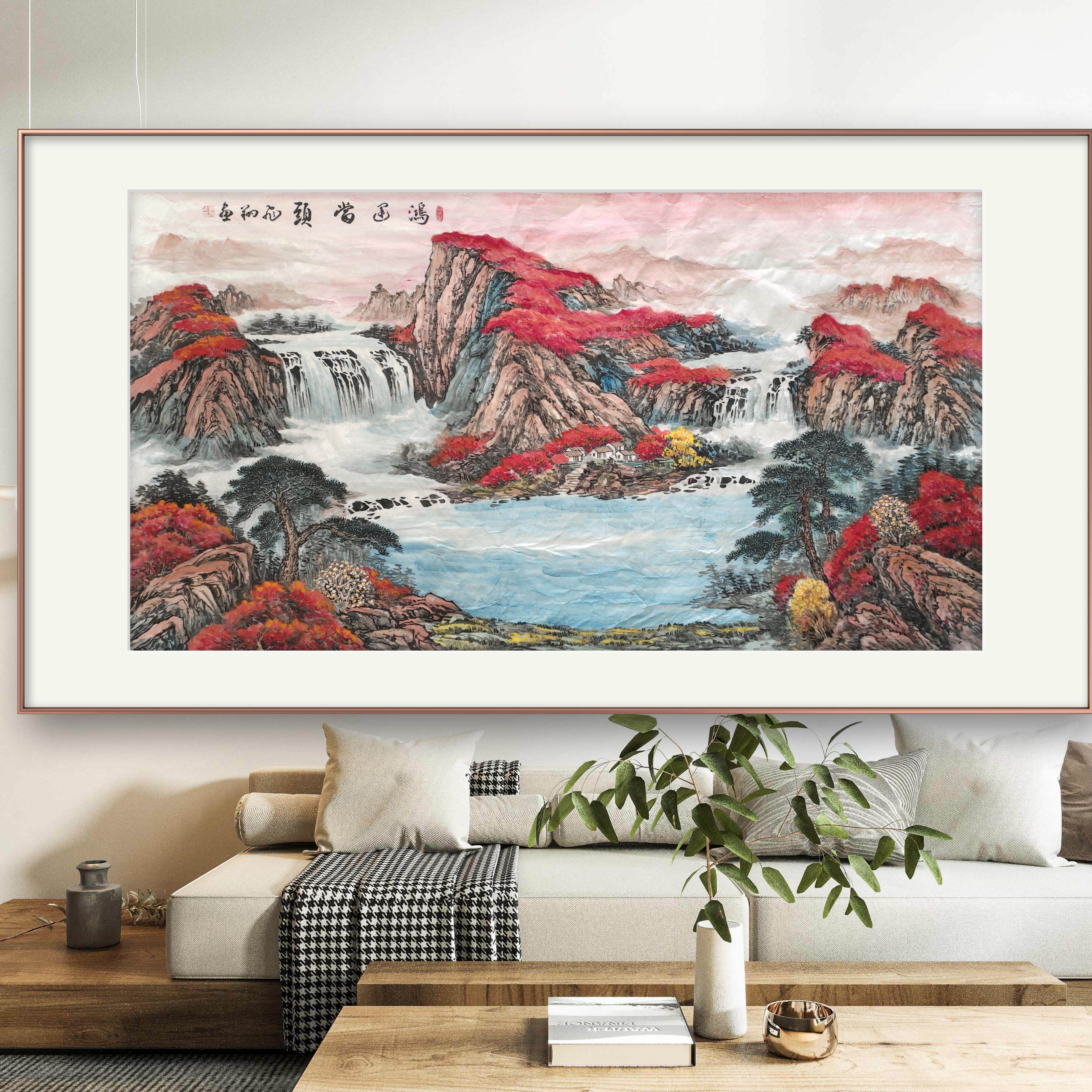 名人手工真迹纯手绘字画高档挂画办公室背景墙山水聚宝盆客厅装饰