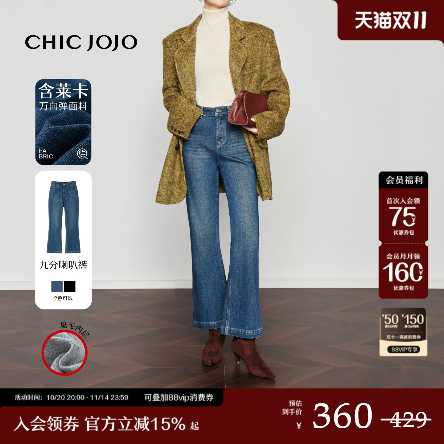 【摩登映画】CHICJOJO微喇牛仔裤女25冬新款蓝色磨毛加厚时尚九分