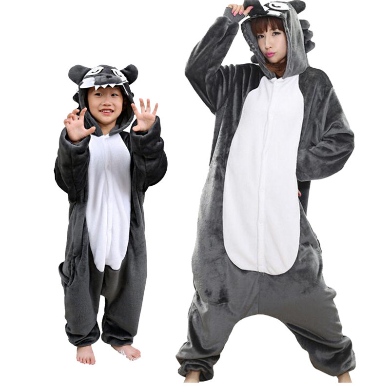 秋冬季大灰狼卡通连体睡衣男女宝动漫家居服儿童话剧演出服狼外套