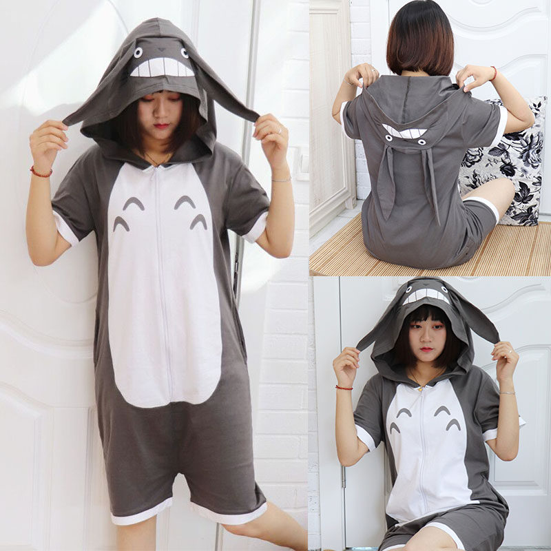 夏季纯棉短袖可爱猫咪柴犬动物连体睡衣女卡通动漫家居服情侣学生