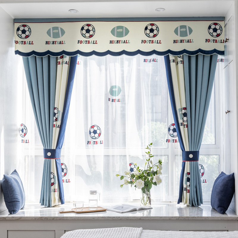 地中海蓝色男孩窗帘儿童房书房落地窗飘窗半帘遮光帘男童隔热窗帘