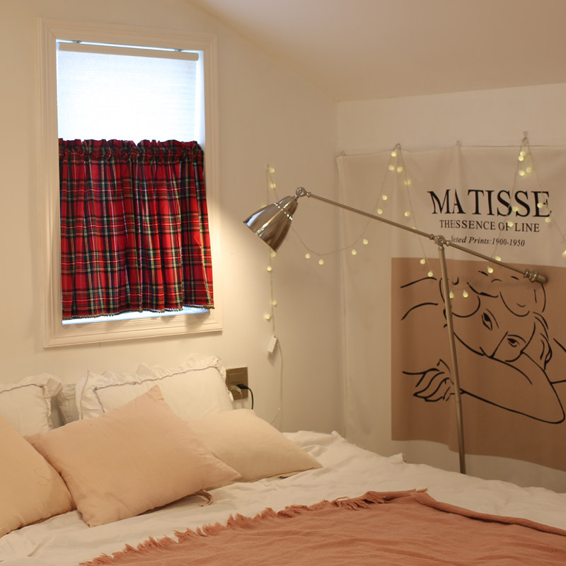 鸢尾乡旅英伦红格地中海美式门帘窗帘短帘半帘柜门帘咖啡帘免打孔