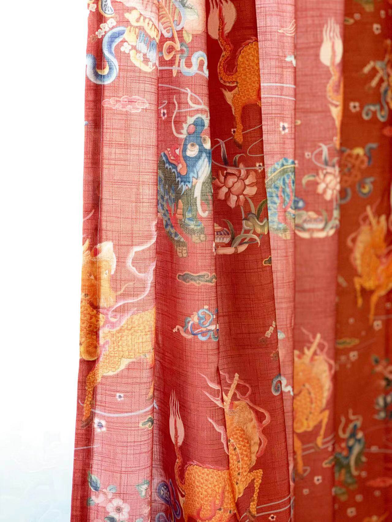 年货节茜茜李新年东方美学棉麻窗帘中式古典红色国风布帘天降祥瑞