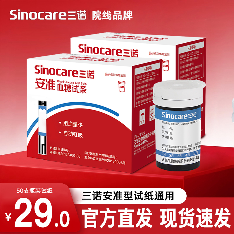 三诺安准血糖试纸条家用精准测糖独立装100片血糖试纸安准测量仪